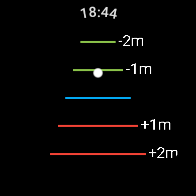On the bicycle however, I have more control over how fast I ride. To see how I am doing, I wanted to display an indicator that shows the user how far ahead or behind the current position is compared to a pre-recorded reference ride. For example, with a quick glance the user should be able to tell that they are about half a minute ahead.